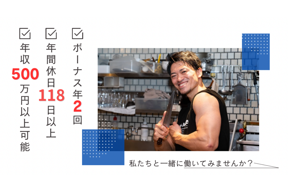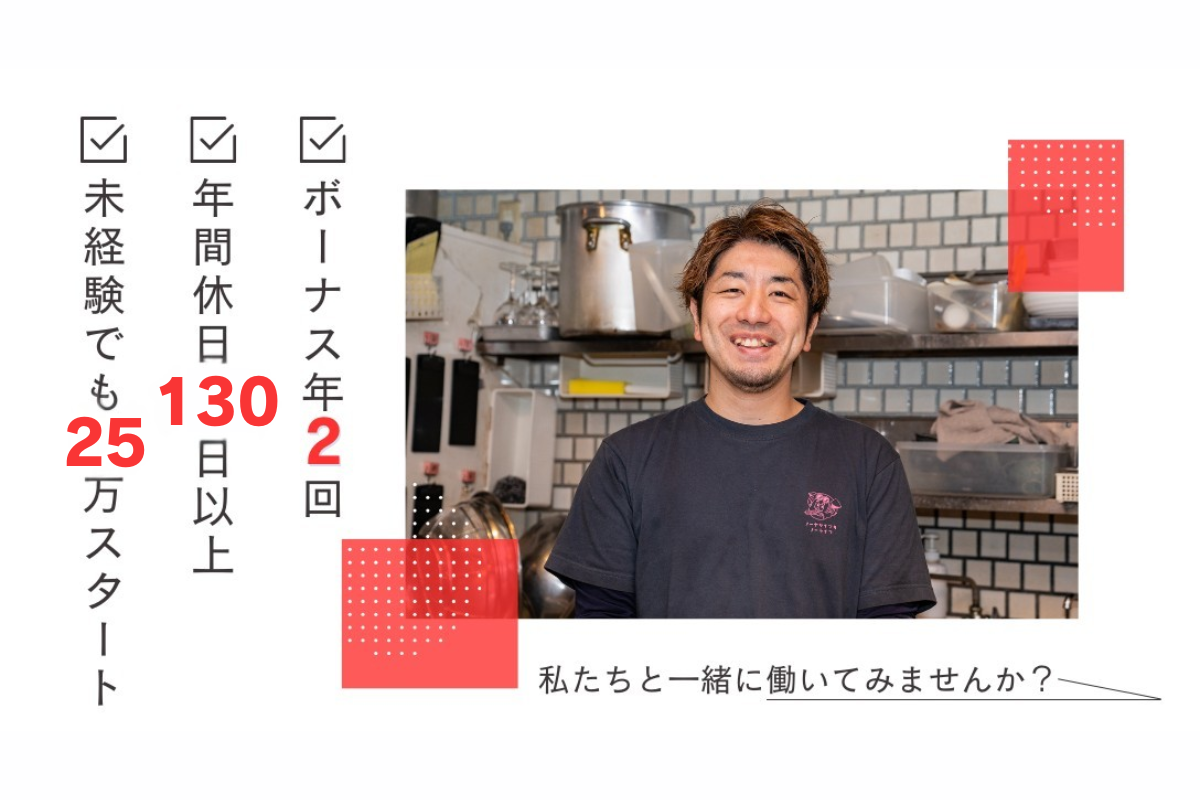 日本で経験を積んだ先に、アメリカ勤務という選択。 家賃・渡航費会社負担、給与は現地水準+チップ制度あり。 海外で働きたい想いを、仕事として実現できます。 ✦ ここがPOINT ✦ ・🇺🇸 将来、アメリカ店舗で働けるチャンスあり ※当社で3年以上勤務した方が対象 ・✈️ アメリカ配属時は、渡航費は会社負担 ・🏠 現地家賃は会社負担 → 生活コストを抑えられるため、しっかり貯金が可能 ・🇯🇵 年2回の帰省制度あり → 海外勤務でも日本との距離を感じにくい環境 ・💰 チップ制度あり → ホール・キッチンで配分率を決め、全員に還元 → 日本では得にくい収入構造 ・📈 給与はアメリカ配属時に、現地水準へ変更 → 経験とポジションに応じて収入アップ 👉「海外で働きたい」だけでなく、 海外で“生活しながら働き続けられる条件”を整えています。 日本勤務期間の仕事内容(入社〜3年) ・ホール・キッチン業務 ・接客・調理の基礎 ・店舗運営の理解 ・後輩育成・チーム連携 ※経験や成長度合いに応じて、 店長・料理長候補としての業務もお任せします。 ✦ 身に付くスキル ✦ こんな事が学べます!